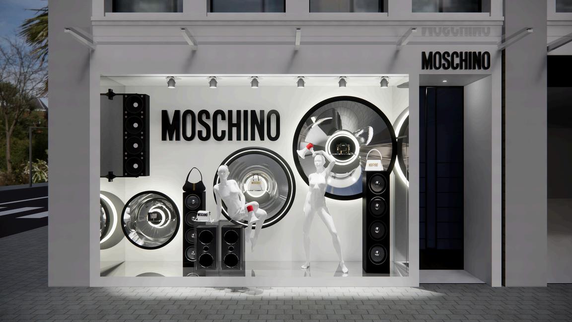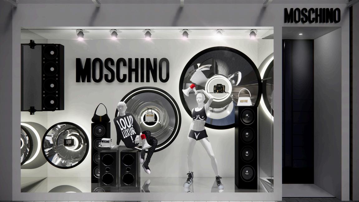 This window display is inspired by one of the runway’s Moschino spring/summer 2024 under the LOUD LUXURY! concept. Which is still keeping the Moschino identity, such as the extravaganza of the speaker, combinding with the new collection of spring/summer. And I compared those speakers to shouting out loud.