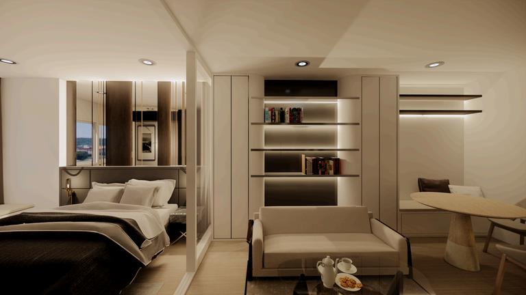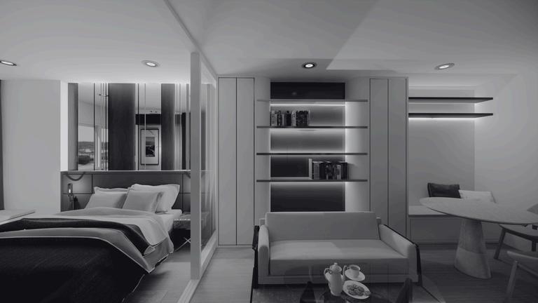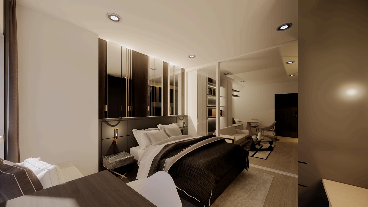 "Calm Reflections" represents a harmonious balance between inner peace and visual sophistication. The word "Calm" refers to the serene, soothing atmosphere created through soft lighting, earthy tones, and minimal yet warm material palettes. Meanwhile, "Reflections" symbolizes both literal reflections through the use of mirrors and glossy surfaces that enhance spatial depth and metaphorical reflections, encouraging mindfulness and self-connection within the space.