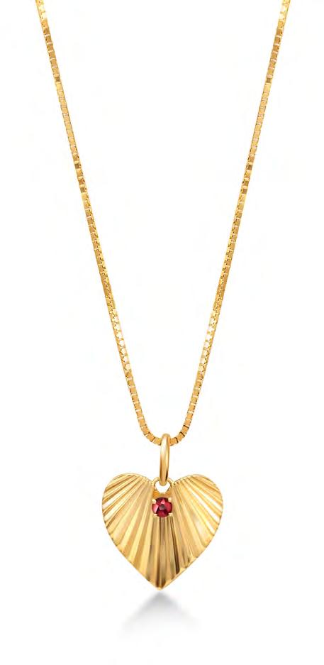 Pingente Coração Raiado em Ouro 10k e Rodolita