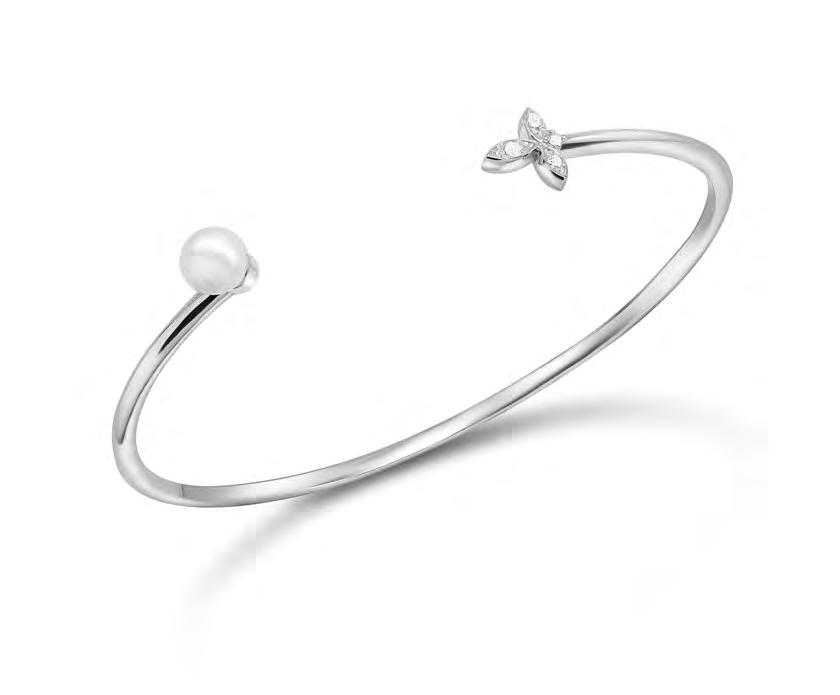 Pulseira Rígida em Prata 925 com banho em Ródio Branco, Pérolas e Zircônias incolores