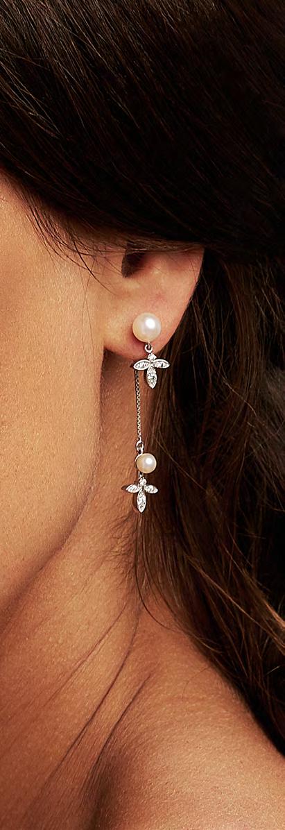 Acessório para brinco em Prata 925 com banho em Ródio Branco, Pérolas e Zircônias incolores