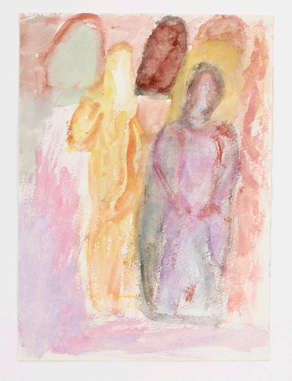 Svava’s works comprise buildings sawn out in wood, pottery and watercolours; in the latter nature reigns, extending almost out to the edge of the paper, leaving little space for the sky, moon and stars. Defined forms are few, with more emphasis on line, swaying into curves and short twists and tangles;
