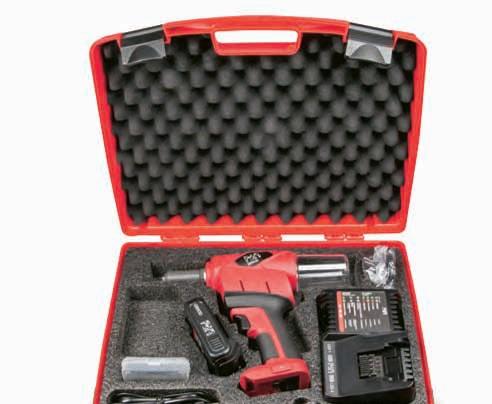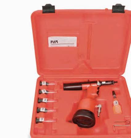 • Kunststoffkoffer mit pneumatisch-hydraulischem Setzgerät mit Gewindedorne und Mundstücke M4 ÷ M8 für Blindnietmuttern mit einem erforderlichen Hub von mehr als 7,5 mm.