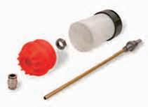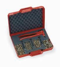 • Valigetta di plastica contenente una rivettatrice oleopneumatica, con tiranti e testine M4 ÷ M8, per inserti filettati che necessitano di una corsa superiore a 7,5 mm.