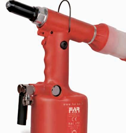 • Hydropneumatic tool for blind rivet nuts in carton box with single size of head and mandrel to be chosen from M4 ÷ M12.