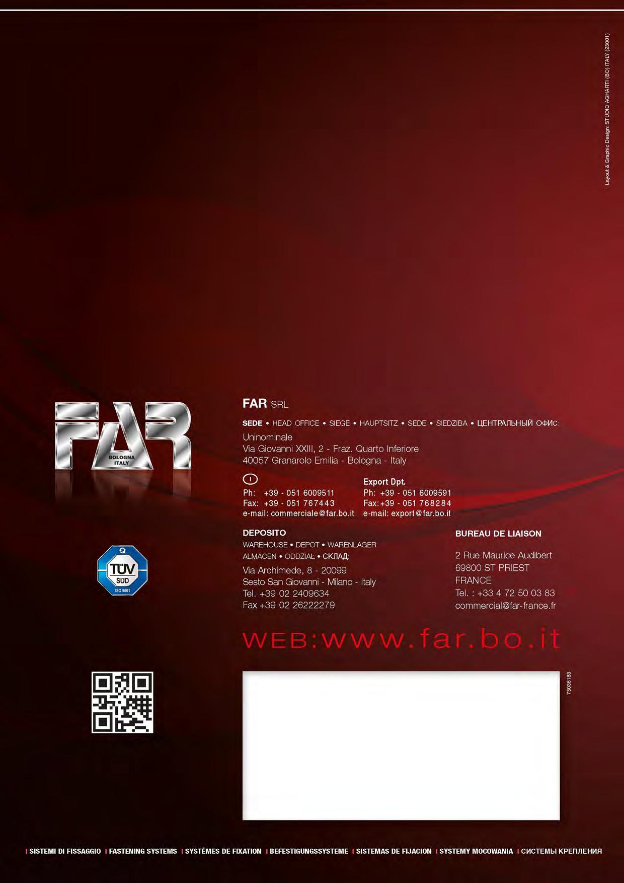 Since 1957 FAR has been producing high technology fasteners with guaranteed maximum efficiency and performance in service and quality of product.