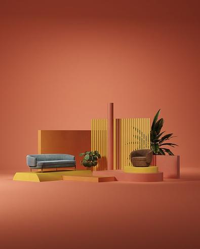 The design is heavily inspired by the Memphis design movement with its bright, eye-catching colours. The contrast between the bold colours and wood accents gives the TV programme the freedom to enhance these features in alignment with the intended aim of the show. Combining both darker more intense colours that can be brought out for a late night show and softer more airy colours to mimic daytime for other shows.