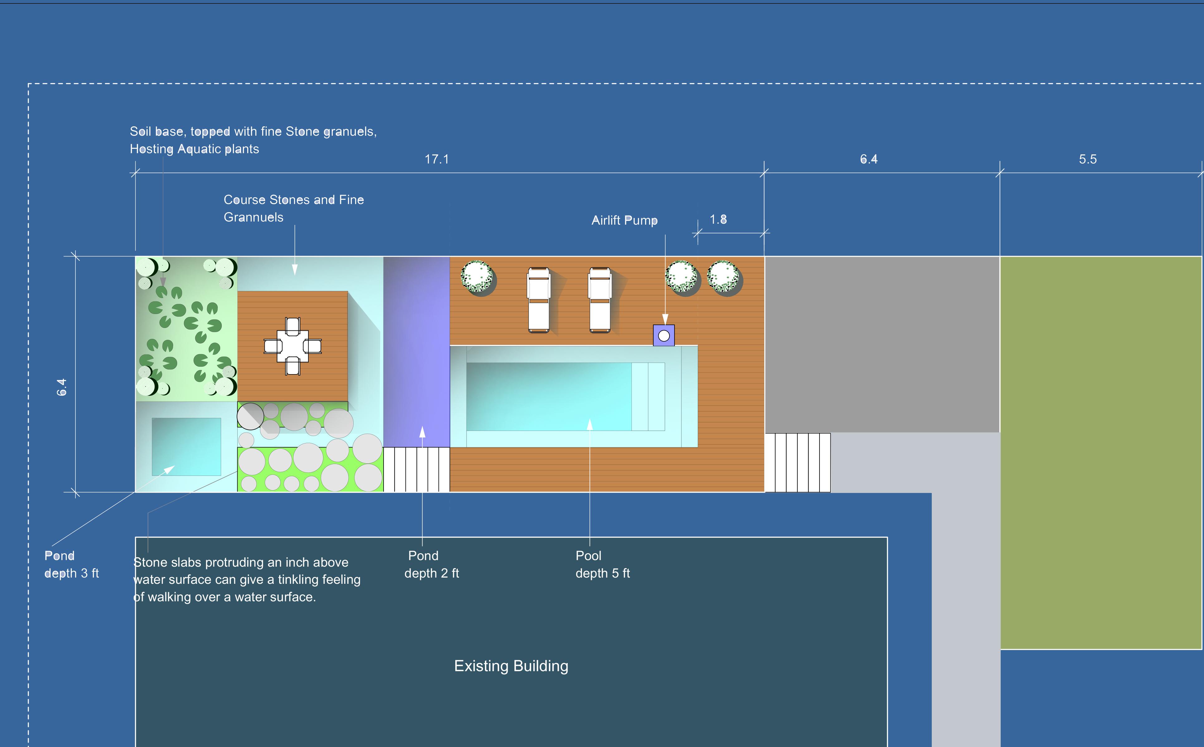 Organic Pool is one such concept, where an eco-system, similar to a Natural lake can be created, in a relatively smaller space. Water is slowly circulated with the help of low power airlift pumps to keep it fresh and oxygenated.
