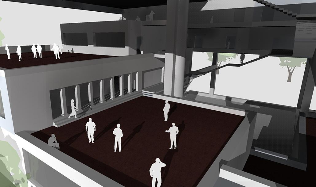 The building is designed in a spiral form around a central axis, which creates a matrix of covered and open spaces which creates a feeling of lightness & transparency. Terraces are designed in an informal way at each floor level to provide interactive spaces.
