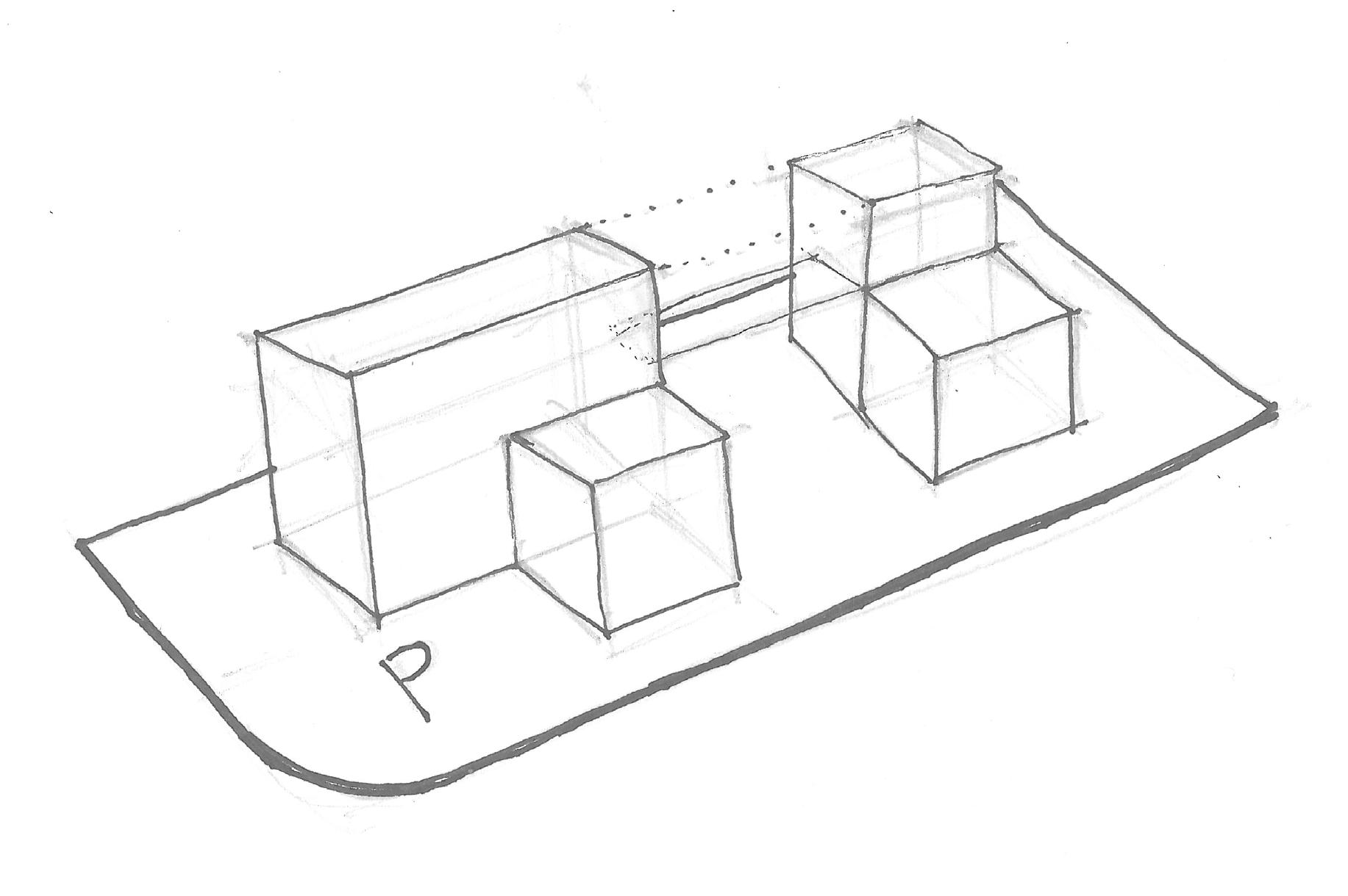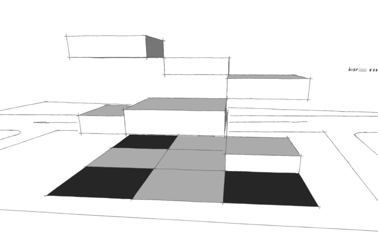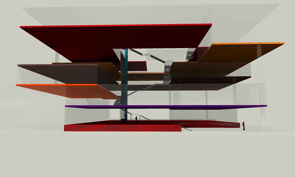 By arranging these squares around a central axis in a spiral shape the basic form of the building is derived.