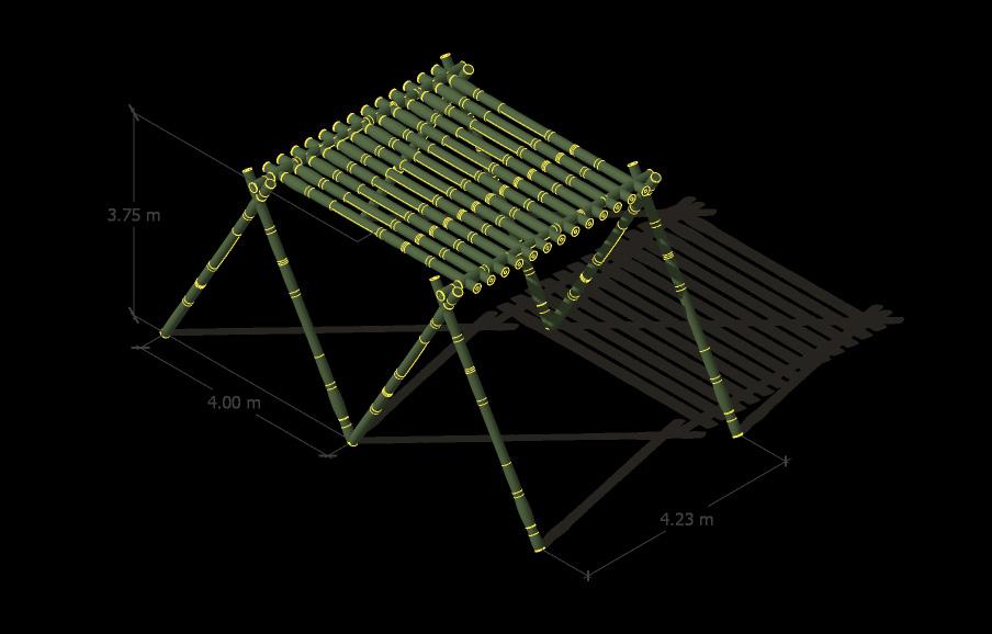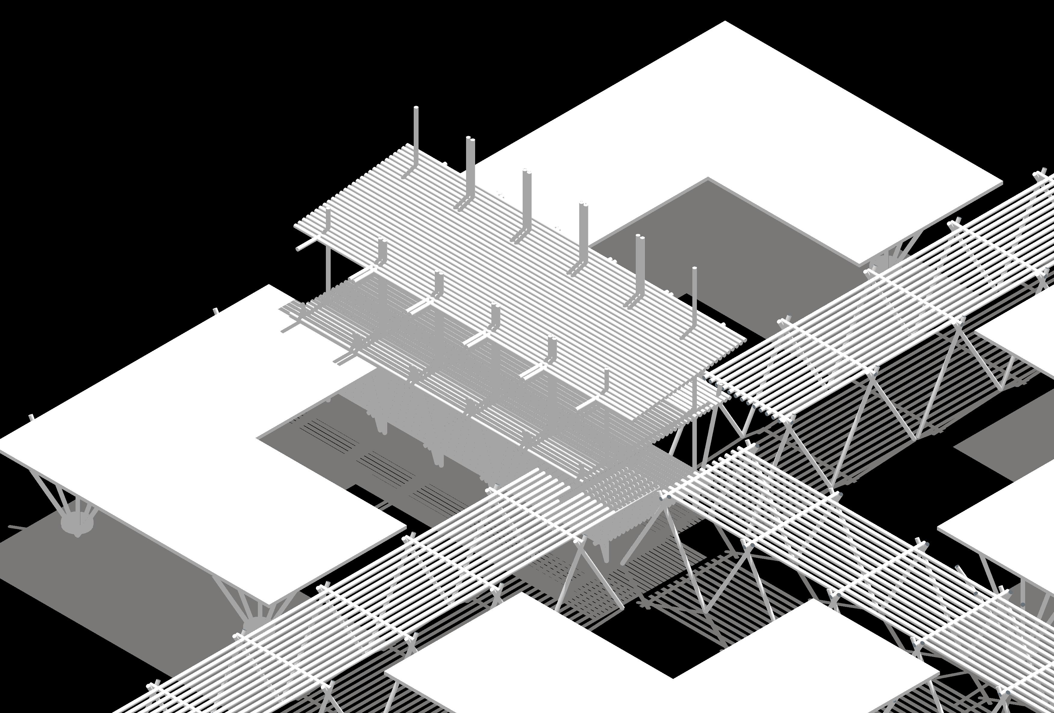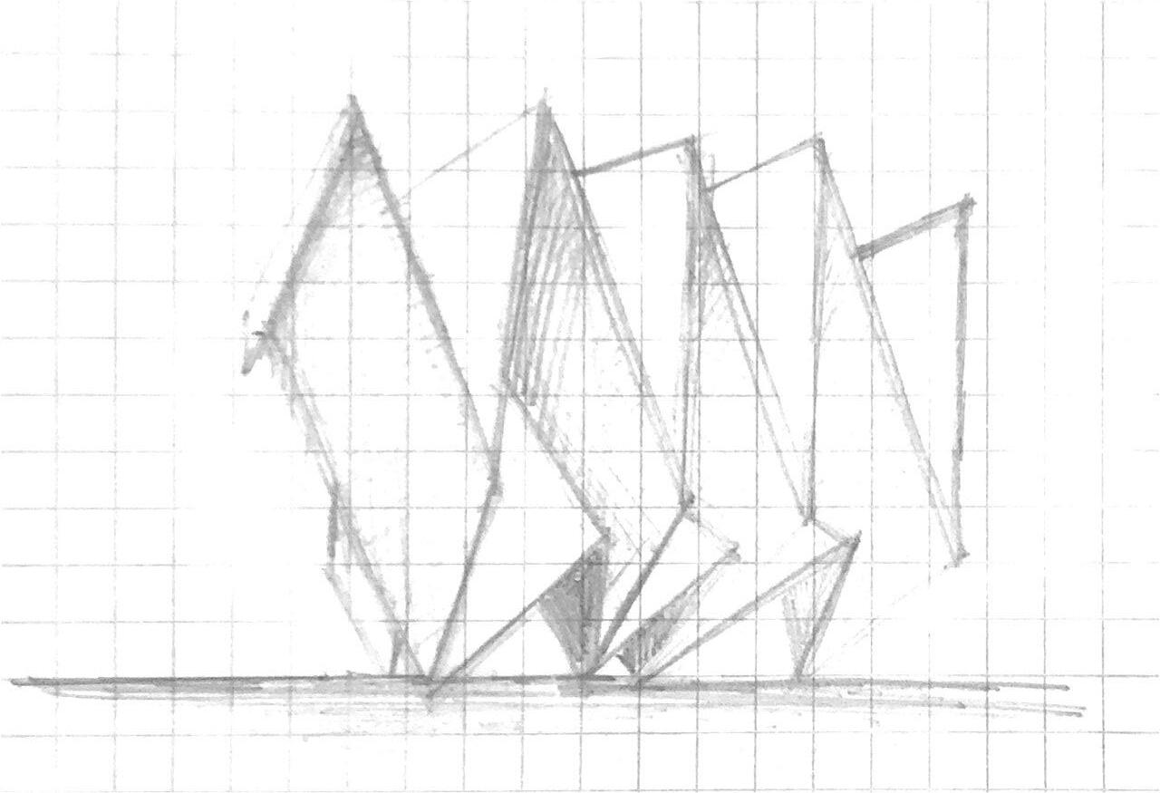 Site situated right on the ECR(Chennai), was quite a Humid site, the design could not have large obstacles that would obstruct wind flow, and affect the little cooling the site offered. The programmatic needs were clear as to have larger outdoor exhibition area. Deployable structure was the way to go, the design started with a simple triangle that can fold and unfold. These foldable triangles were joined creating framework of aluminium struts and fabric that could be brought down when needed.