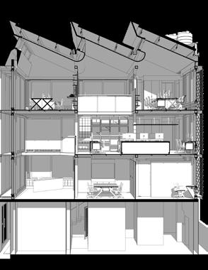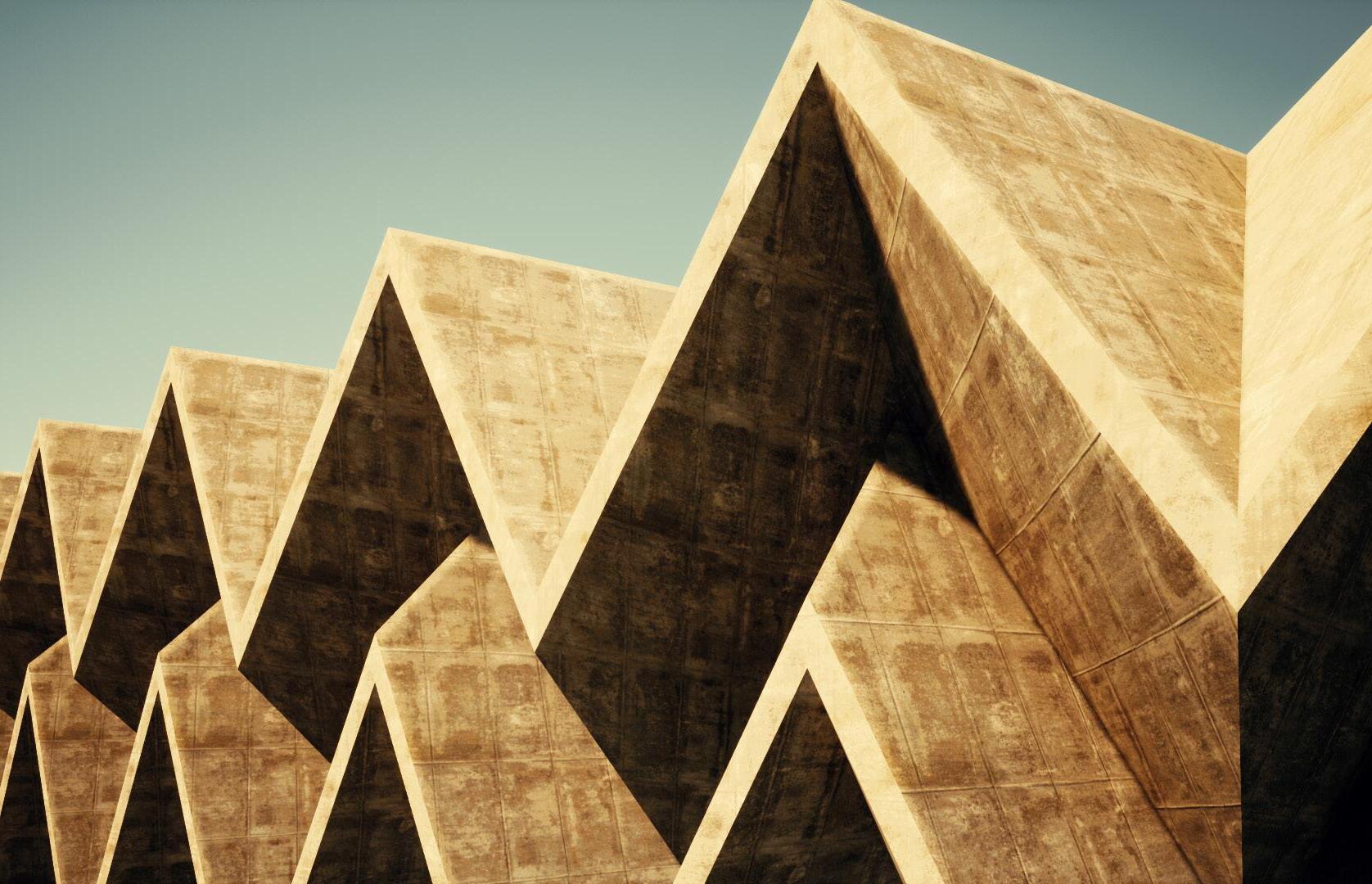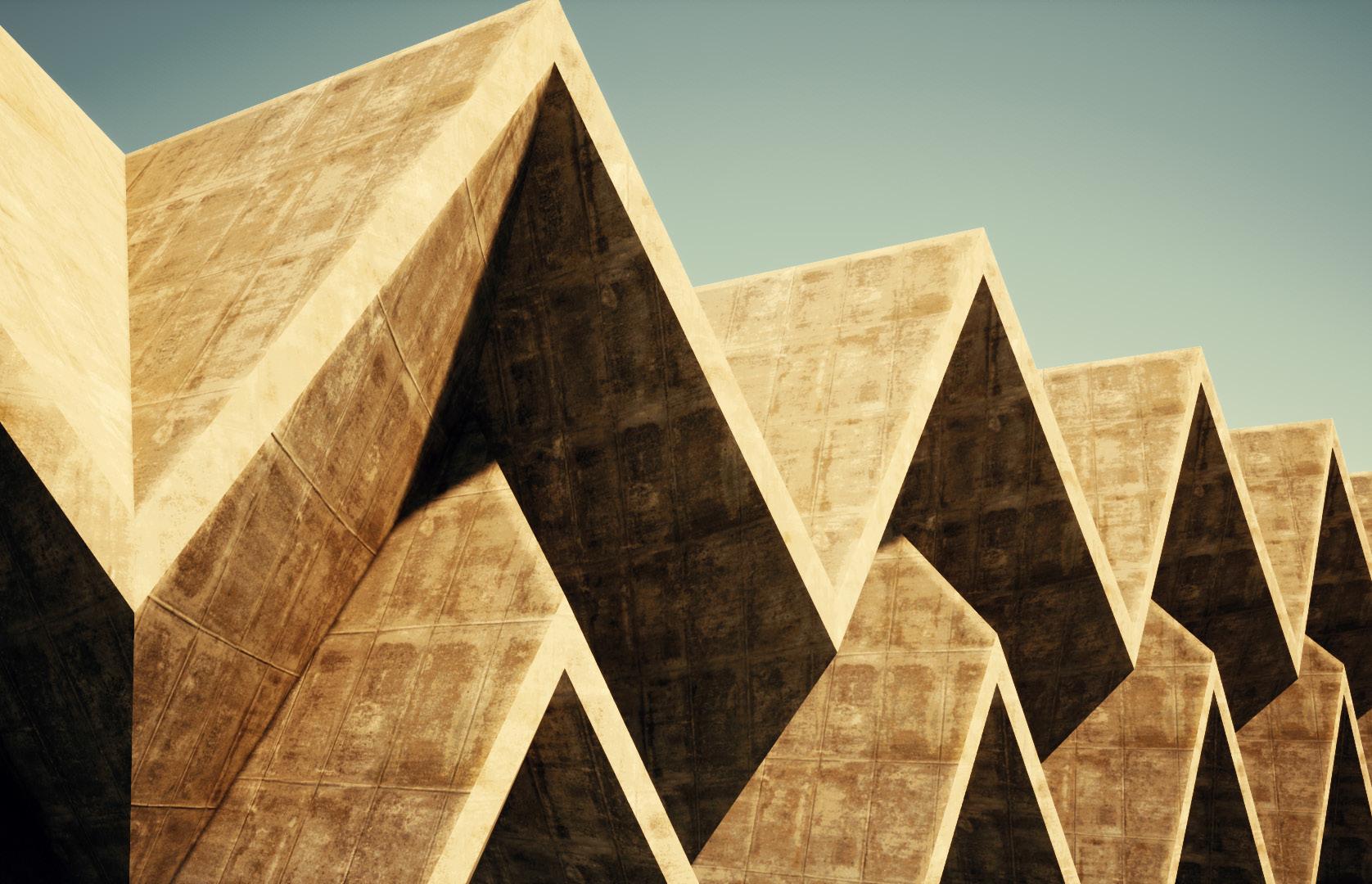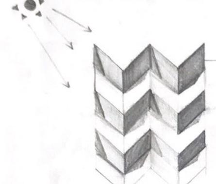 self shading surfaces that could create large windows that brought in light and ventilation in the interiors.