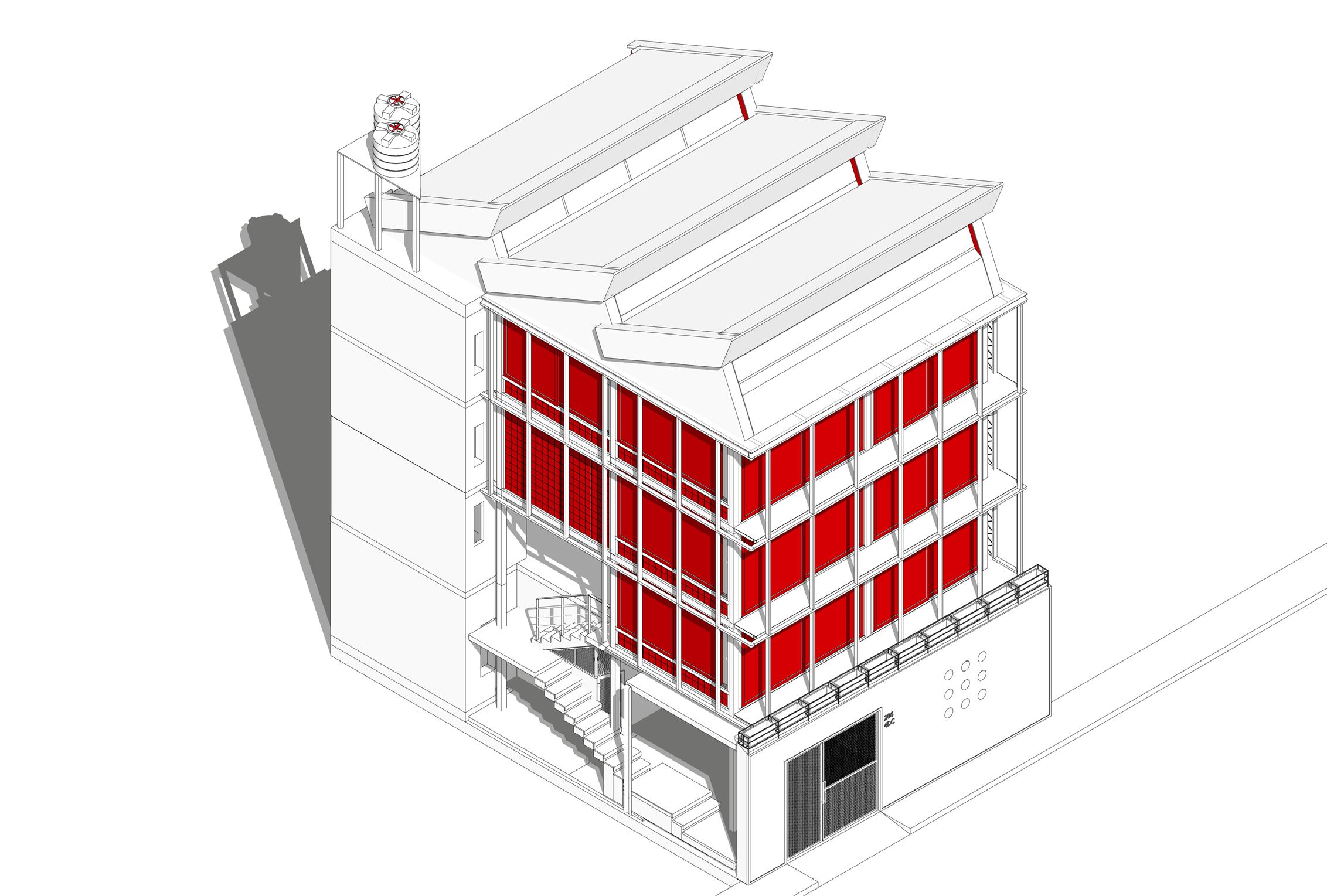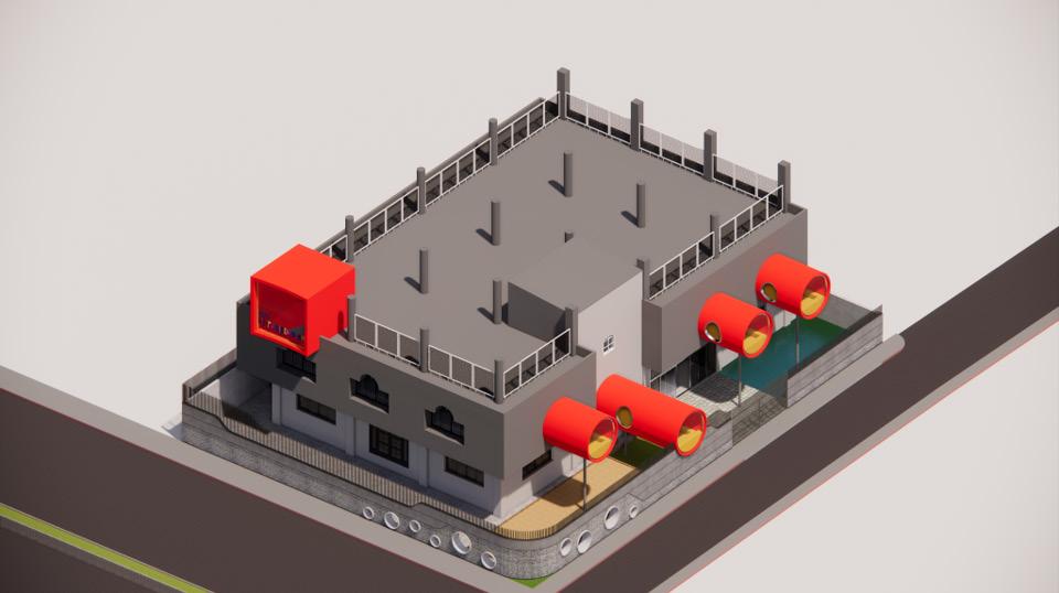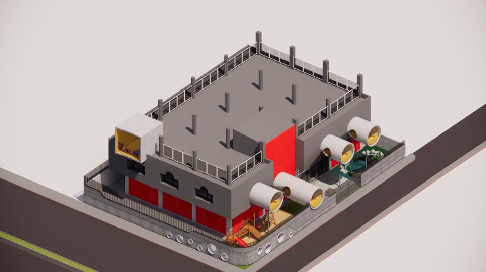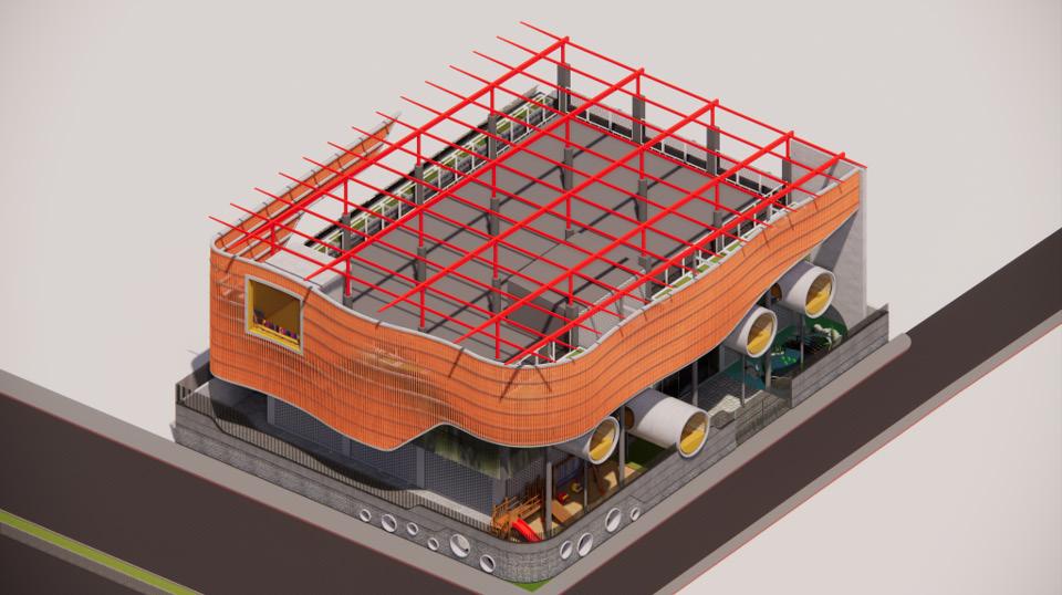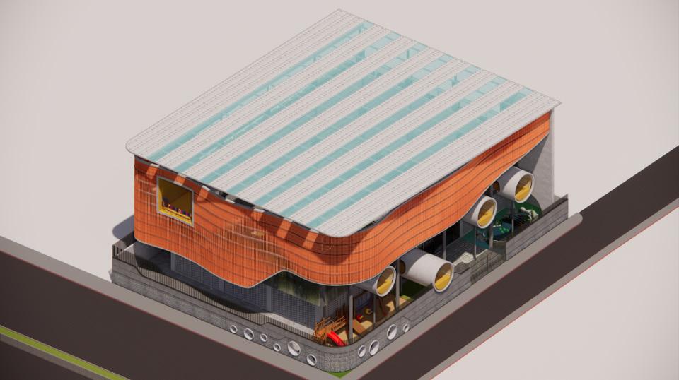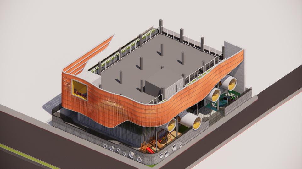 The elementary education institute was acting as a feeder school for the larger organisation. The project was an existing 2 storey building that neede a facelift. The elementary school needed playful extensions owing to the limited site area. The existing studio windows got interesting attachments that act as a play area. The Brick Jali Facade sheilded the school from bustling streets of Coimbatore.