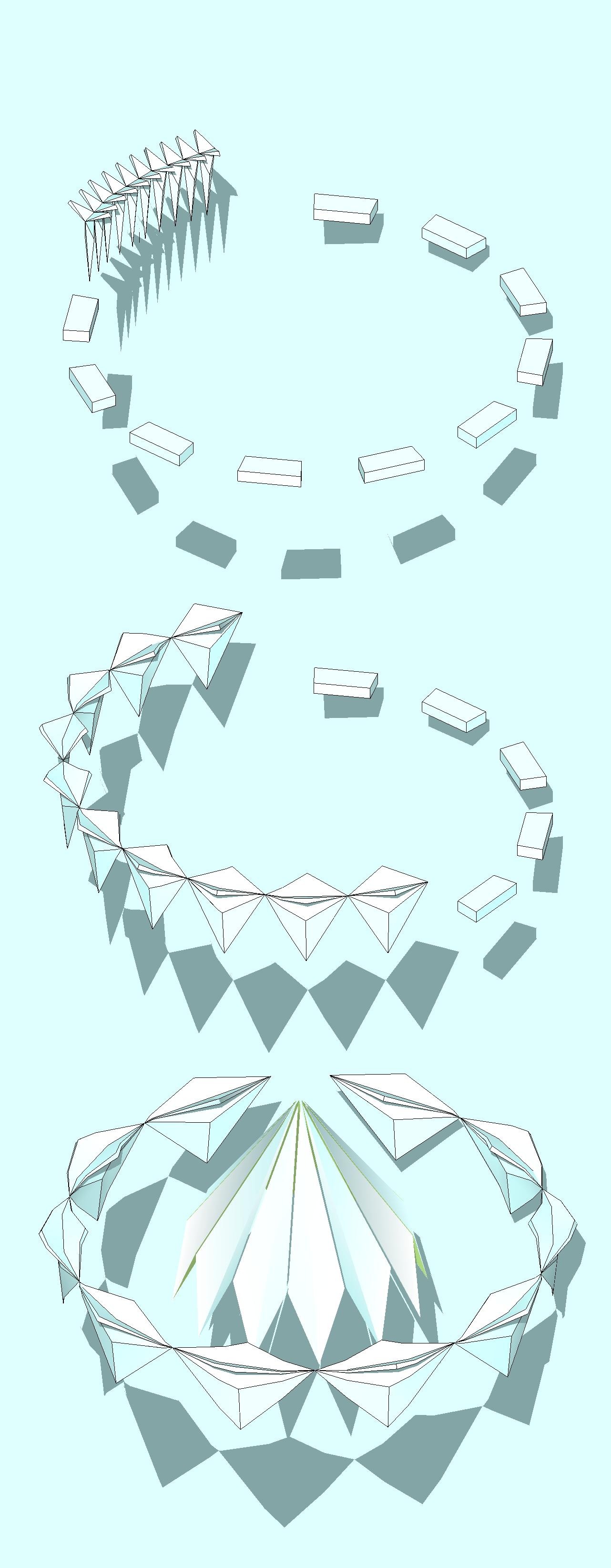 Folding and unfolding was a key area of study throughout the semester. The programmatic needs for such a place also demanded deployable structure.