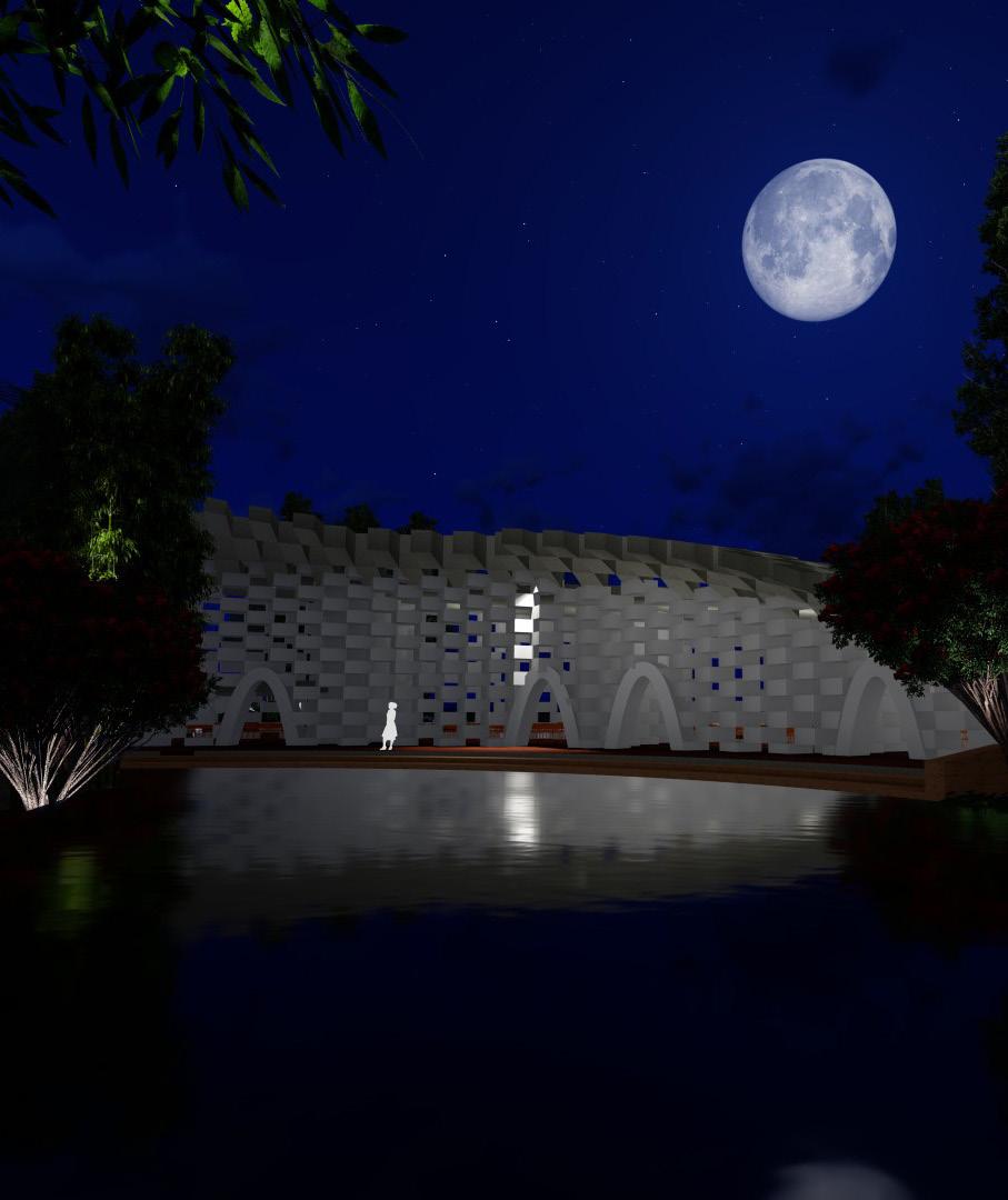 cold storage. The ruined fort had 3 entrances formed by ruined fort wall. To create a remembrance of the grandeur of the past fort, emphasis on the axis and symmetry take the front seat in design. The oblique shaped fort under ruins lies there without any of its past glory. The monumentality of such a such structure