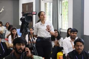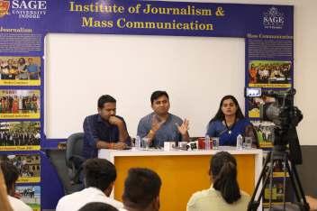 The students of IJMC, Sage University , Indore, participated in a demo press conference organized by the department to gain practical knowledge of press conferences as professional journalists. This event, held in the past, aimed to equip students with the essential skills and understanding of the Do's and Don'ts of press conferences. Renowned experts in the field, Mr. Ajeet Dwivedi, Senior Correspondent from Doordarshan Delhi, and Mr. Mithilesh Kumar Gupta from Network18, shared their valuable insights, making the event even more fruitful. Through this demo press conference, students learned how to effectively conduct and cover press conferences, a crucial aspect of journalism. The event provided a hands-on experience, enabling students to apply theoretical knowledge in a realworld setting, enhancing their skills and preparing them for their future careers in journalism.
