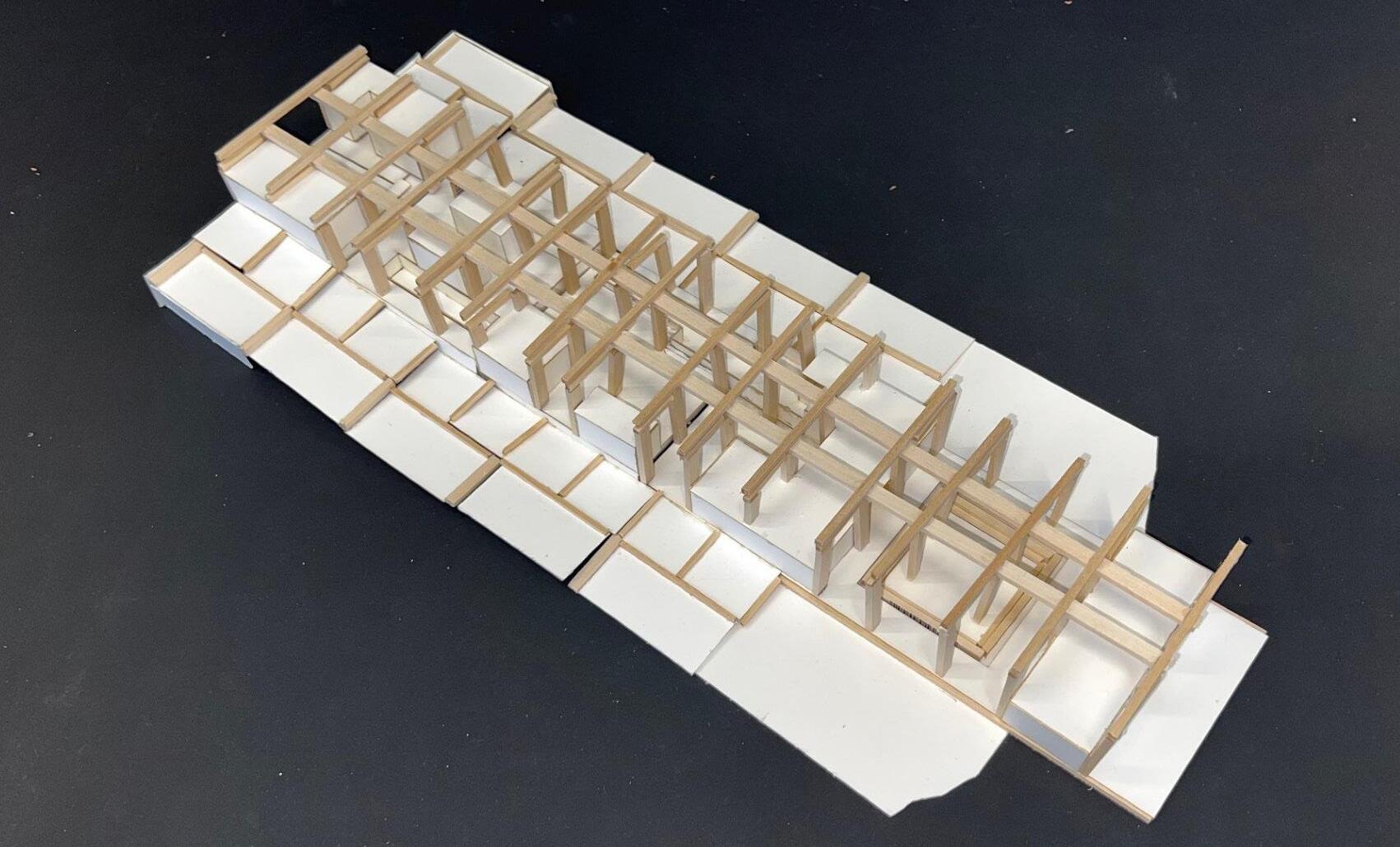 In this group project, worked along with Casey Kelly, Alana Mitchell, & Manaal Nabi, we focused on designing a micro home with prioritization in the system and structure design along with architectural design. In the course, Building Systems I, we were introduced to multiple structure types and were tasked to utilize this new information onto a micro home of our design. We started by analyzing timber structure micro homes for design and structure inspiration which informed our final design. With our main structural material being timber, we used course content to incorporate structural elements necessary to building and use our proposed home. This project helped us internalize systems knowledge which would inform this project and other architectural projects in the future. This project allowed us to navigate a design problem as a team and practice in architecture detail drawing.