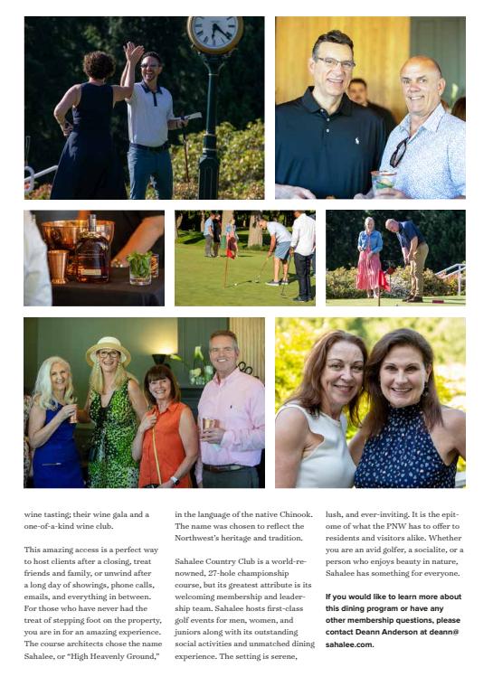 I wanted to share with you the spread in a local real estate magazine done on the Sips at Sahalee event in June. You will find it on pages 43 & 44. This is a great example of an advertorial where we can share information about the Club without crossing the line in advertising for memberships. While there was a cost to the event itself, this spread was at no cost to the Club.