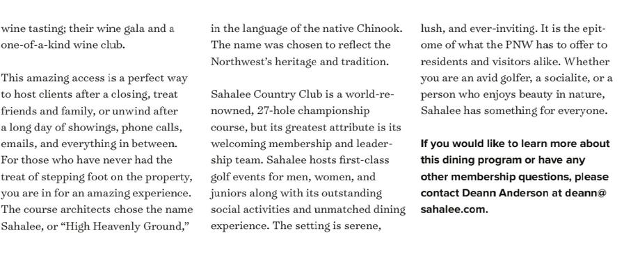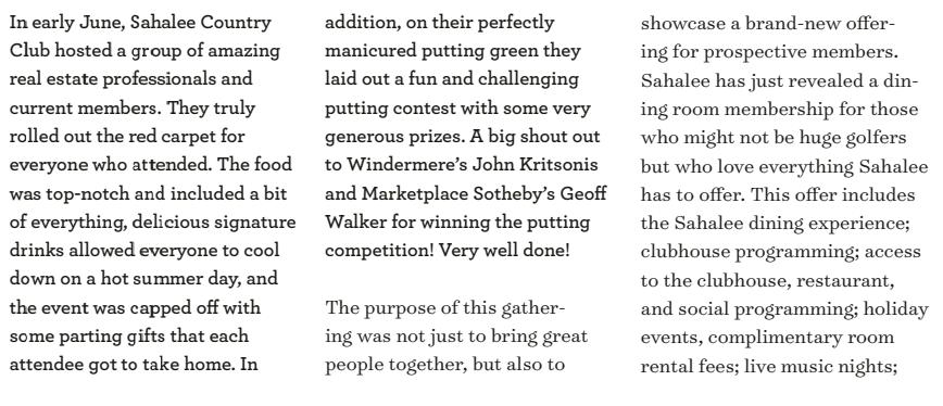 FOLLOW US FOR MORE INFORMATION Instagram: @sahaleecountryclubofficial @shopsahalee FacebookPage: @SahaleeGolfClub