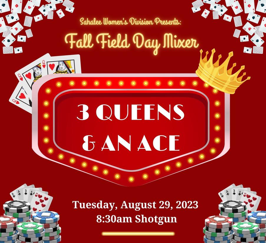 To finish out August, Mary Love Mattox and Sonja Grusz are conspiring with Laura Kraft to make Fall Field Day a new adventure: 3 Queens and an Ace! Details will be coming out soon and I expect another bursting field of fun for all with some new competitions in store for us.