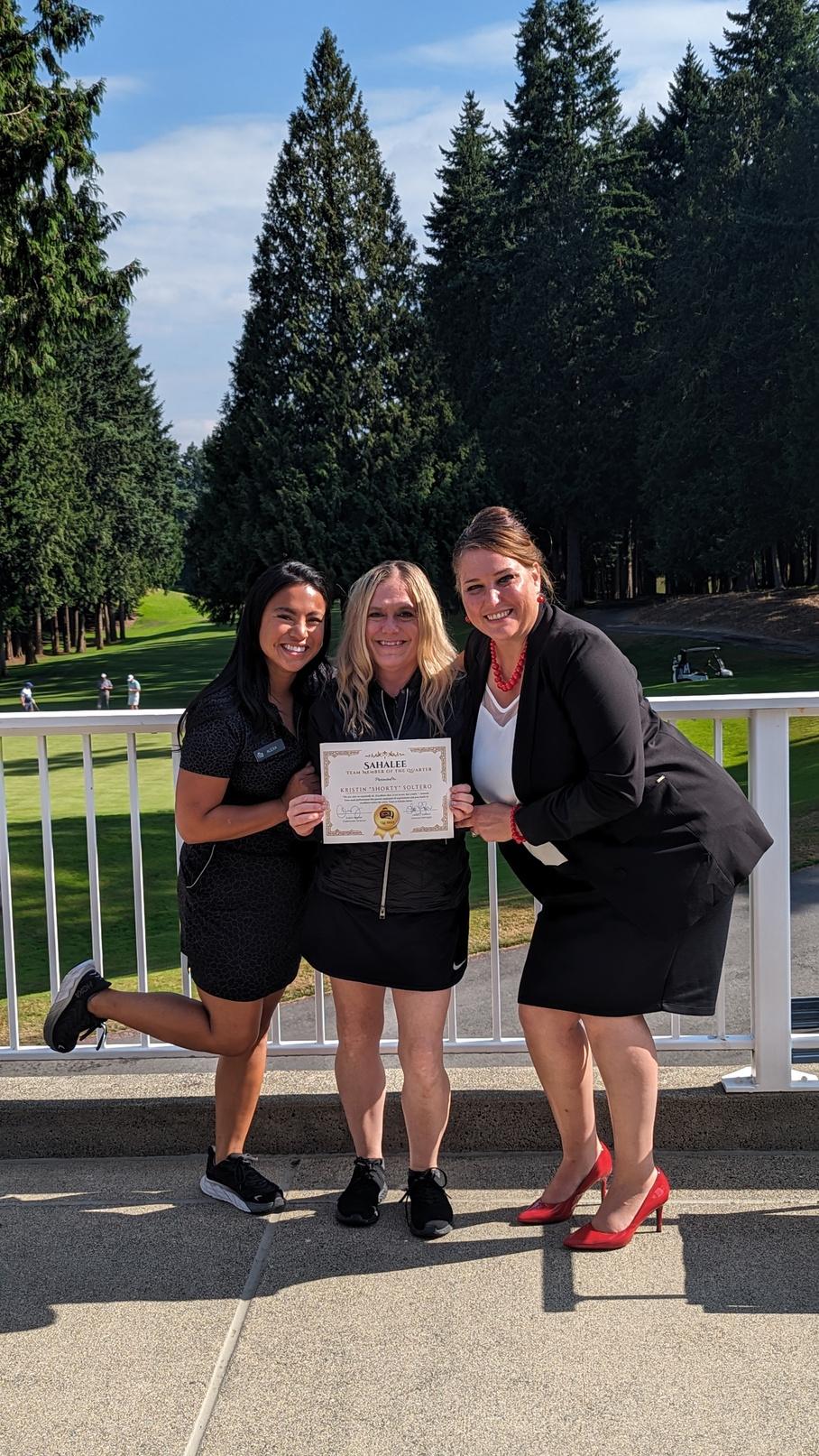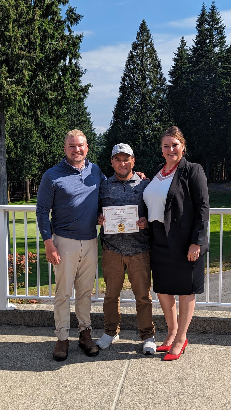On Saturday, July 29th the entire Sahalee team enjoyed a celebration together to honor the Team Members of the Quarter. We enjoyed time together at an all-team breakfast where smiles and laughs were abundant, with camaraderie felt by all. The focal point of the morning was revealing the Team Members of the Quarters. One team member from each department of F&B, Golf, and Agronomy is selected as the Team Member of the Quarter by a secret ballot and vote of the Leadership team. The winners receive a certificate, a personal letter from me, and $250 in cash. A big congratulations to Laura Kraft- Golf, Kristin Soltero- F&B, and Humberto Maradiaga- Agronomy. Be sure to give them a high five the next time you see them!