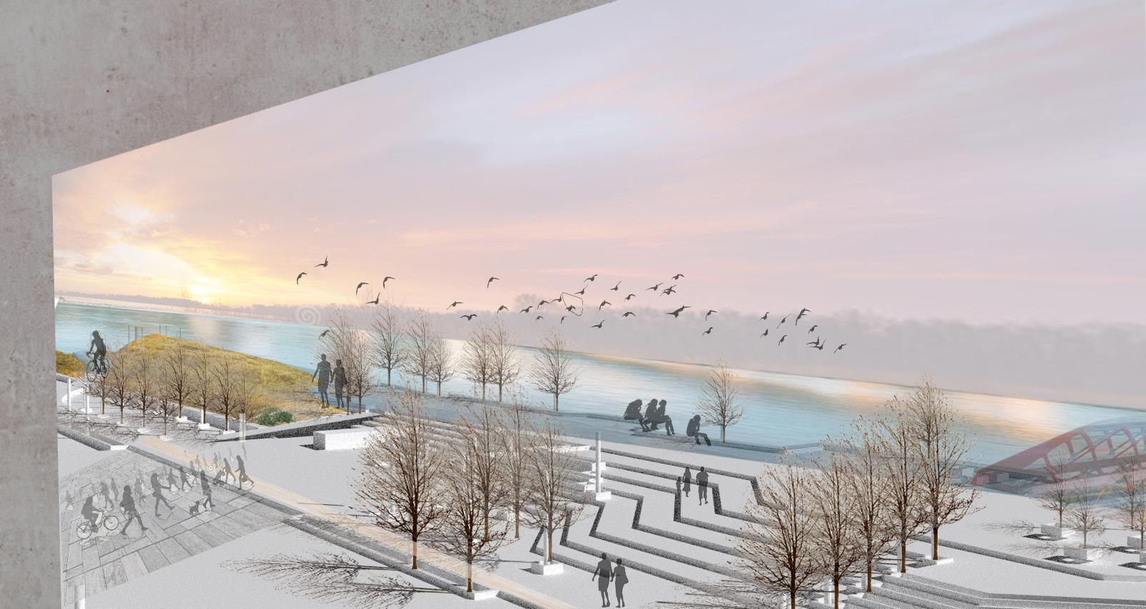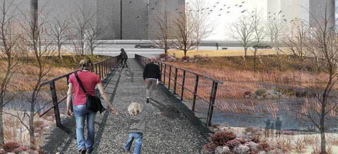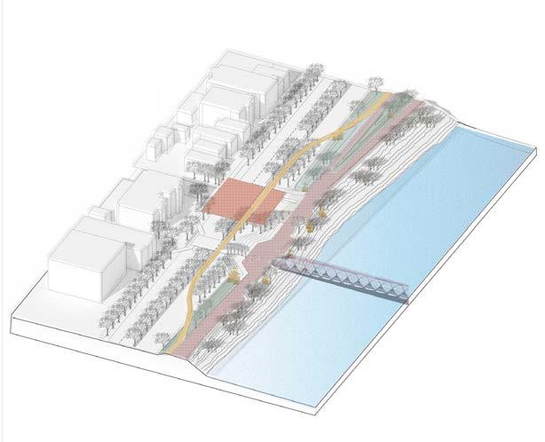 The district’s integration with the riverside through the proposed new gateways aims to expand the natural urban realm on river margins, allowing the neighborhood community to interact with nature and touch the water.