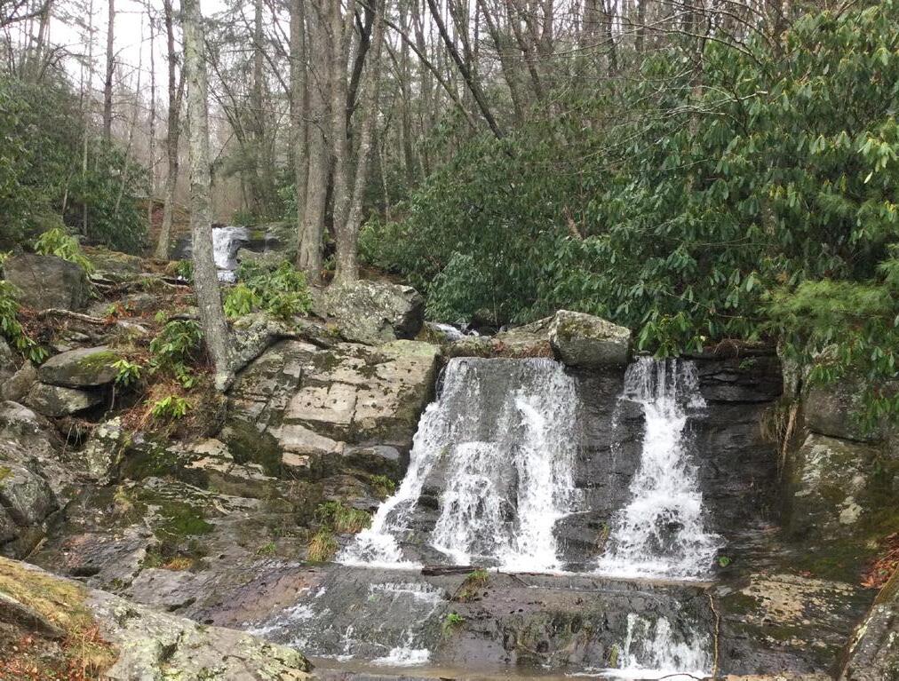 which eventually flows into the North Toe River. The land features wooded trails and mountain views – along with the creek and waterfall.