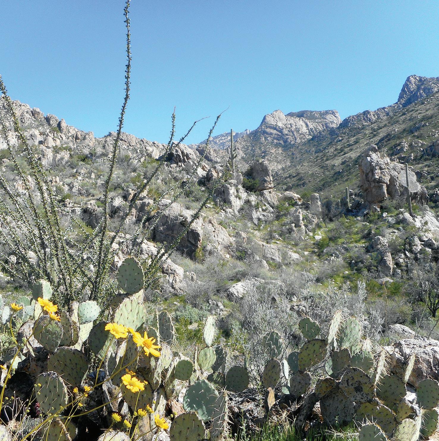Arrive at Cactus Forest North Trailhead via Cactus Forest Drive. Head south enjoying views of the Sonoran Desert and surrounding mountains. Be aware that this is a multi-use trail open to hikers, runners, mountain bikers and horseback riders. This is the only trail within Saguaro National Park available for mountain biking. In addition, mountain bikers are only allowed on the trail between Cactus Forest Drive.
