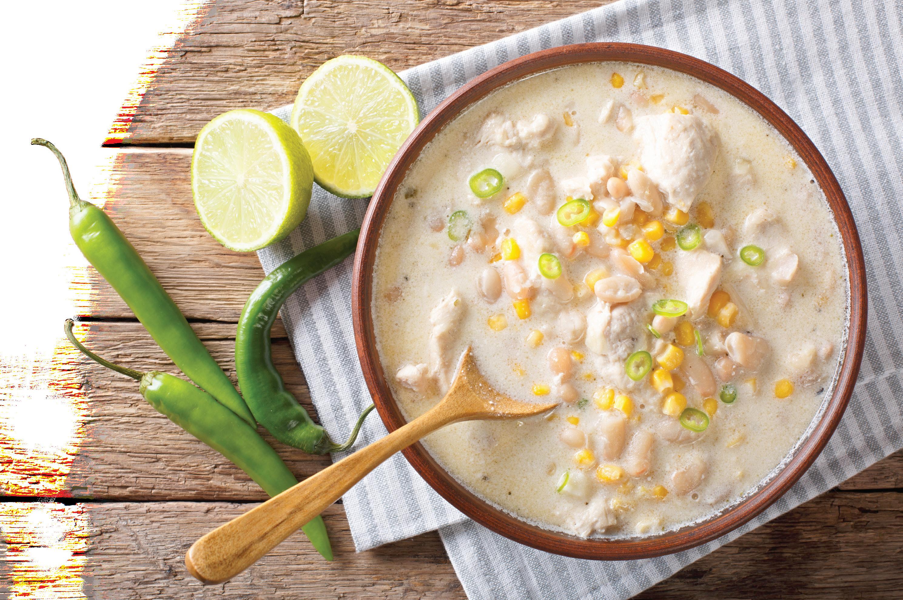 Add the beans and sweetcorn (don’t stir), then place the chicken breast on top. Pour in the chicken stock (again, don’t stir), then secure the lid on the Instant Pot.