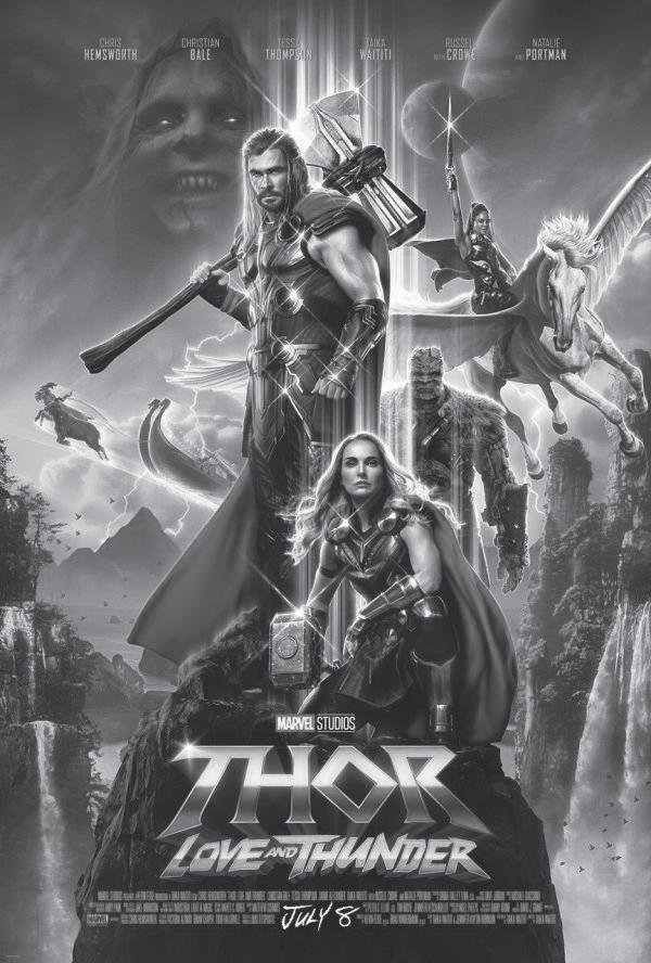 The film finds Thor (Chris Hemsworth) on a journey unlike anything he’s ever faced – a quest for inner peace. But his retirement is interrupted by a galactic killer known as Gorr the God Butcher (Christian Bale), who seeks the extinction of the gods. To combat the threat, Thor enlists the help of King Valkyrie (Tessa Thompson), Korg (Taika Waititi) and ex-girlfriend Jane Foster (Natalie Portman), who – to Thor’s surprise –inexplicably wields his magical hammer, Mjolnir, as the Mighty Thor. Together, they embark upon a harrowing cosmic adventure to uncover the mystery of the God Butcher’s vengeance and stop him before it’s too late.