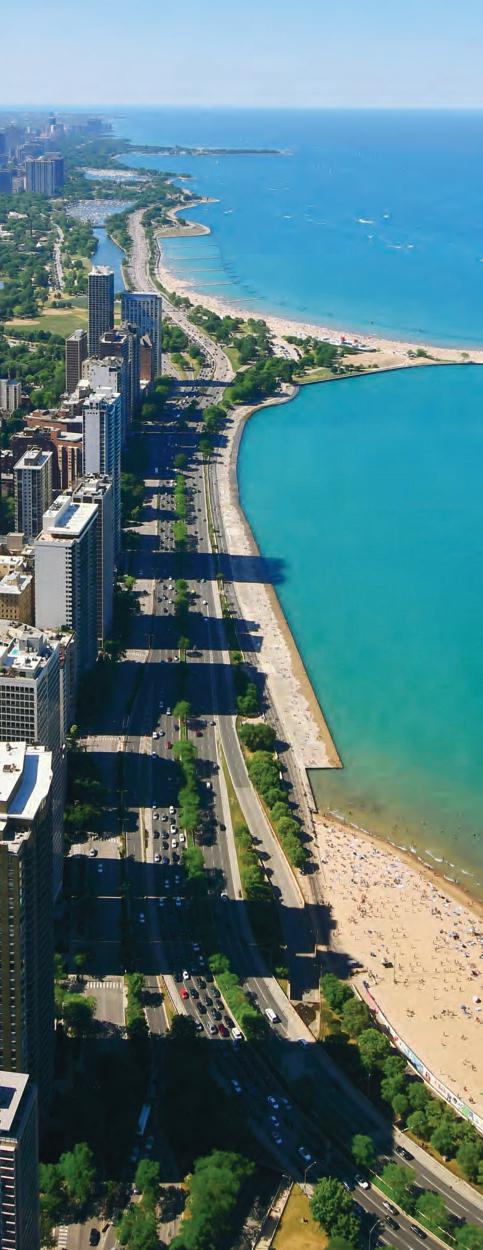 The path along Lake Michigan’s shoreline passes by some of the most popular and historic sites in Chicago, including the Museum of Science and Industry, Soldier Field, the Field Museum, Millennium Park, and Navy Pier. Twenty four beaches—including two dog-friendly beaches—are free and open to the public year-round. Explore the lakefront’s 18 miles of runners and bicyclists, beach volleyball players, swimmers, and parks hosting picnics, summer sports leagues, movie nights, and festivals.