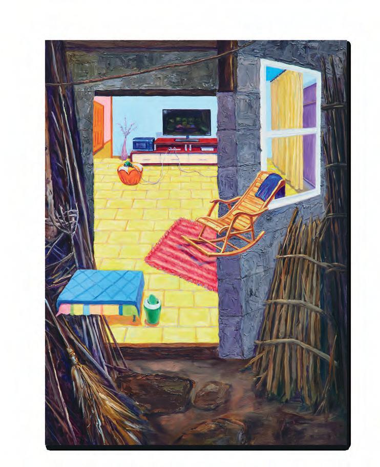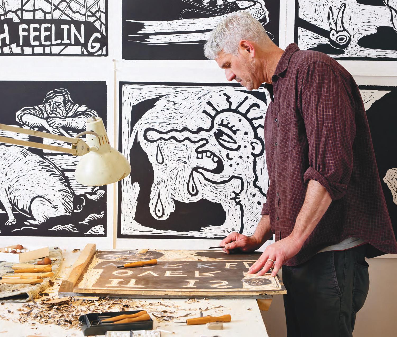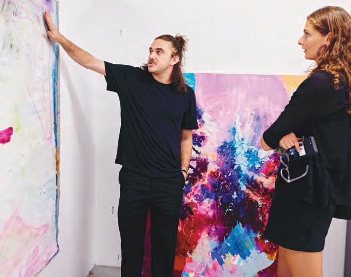 While Angel Otero identifies most as a painter, that doesn’t begin to capture his art. His bold compositions of dried oil paint smash together colors, textures, and focal points, giving the pieces a kinetic aura. Employing unorthodox materials— from oil skins and silicone to resin, tar, and linen— Otero plays with the language of painting from a sculptural stance. This blending of representational and abstract characterized his first solo exhibition, Angel Otero: Swimming Where Time Was, held in 2022 at the New York City gallery Hauser & Wirth. Otero has also exhibited in the Museum of Contemporary Art Chicago, is featured in the Guggenheim’s permanent collection, and has been lauded in The New York Times.