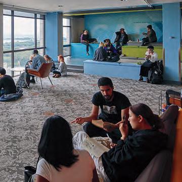 The second floor lounge and café are the perfect spots to grab a bite, meet, relax, discuss, get involved, and be inspired. The lounge also acts as a space for programs and events ranging from open mic nights to film screenings and informal critiques. Also located on this floor are the Campus Life and Student Government/Programming offices and the Student Leadership Suite, where student groups can hold activities and meetings.
