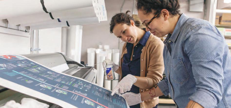 Our on-campus, professional digital output center specializes in laser printing and archival-quality inkjet printing. Facilities include wide-format Epson printers able to produce prints up to 64” wide, with services including binding, folding, button making, vinyl cutting, bulk paper cutting, laptop monitor calibration, laminating, and CD/DVD duplication and printing.