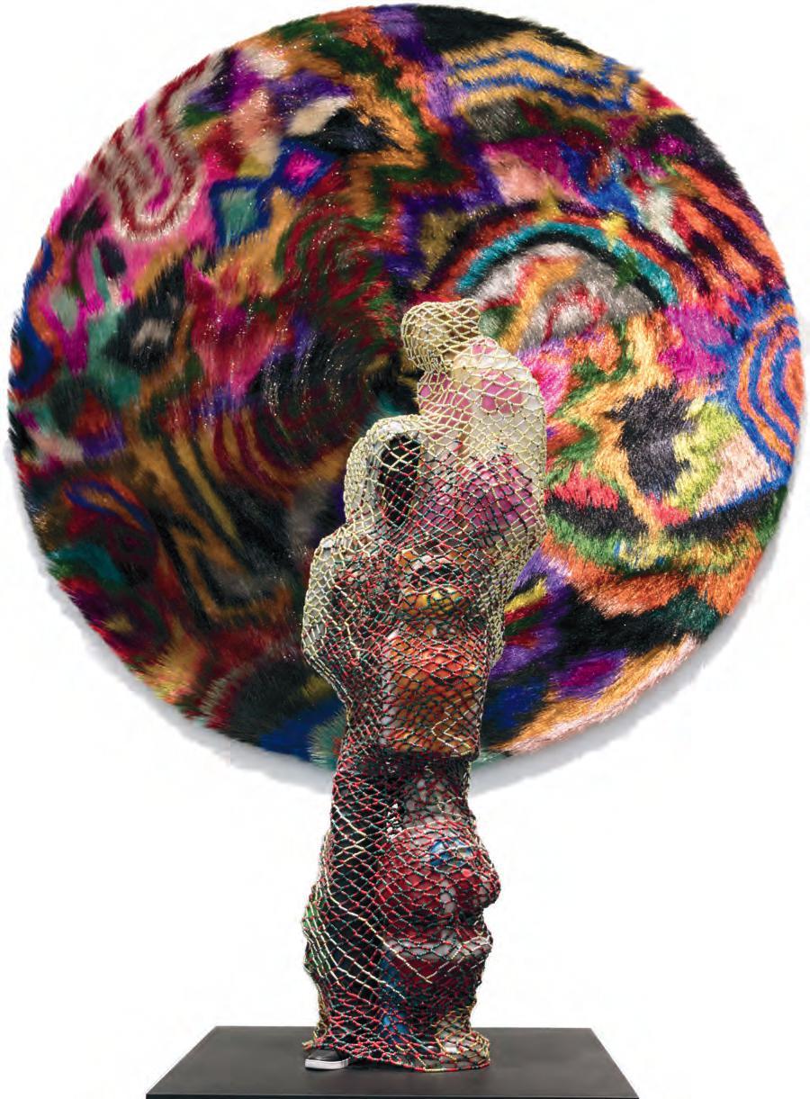 Nick Cave is celebrated as one of today’s most original artists. His work crosses disciplinary lines, combining fashion, sculpture, and performance. Cave’s body of work was spotlighted in his first-ever retrospective, Nick Cave: Forothermore, at the Museum of Contemporary Art, Chicago and the Guggenheim in New York. Serving as an ode to all who have been “othered” by discrimination, the exhibition spans Cave’s career, from vivid metallic wind spinners to his surrealistic Soundsuits. In collaboration with Knoll Textiles, Cave created a line of commercially available fabrics and wall coverings which were featured in a New York Times profile.