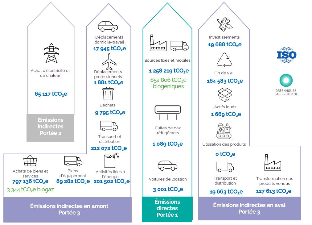 En 2024, seule l'électricité vendue par l'usine Paper Venizel a atteint le facteur d'émission associé à l'objectif à court terme pour 2033 Les émissions de portée 3 sont restées au même niveau que l'année de référence