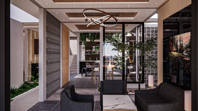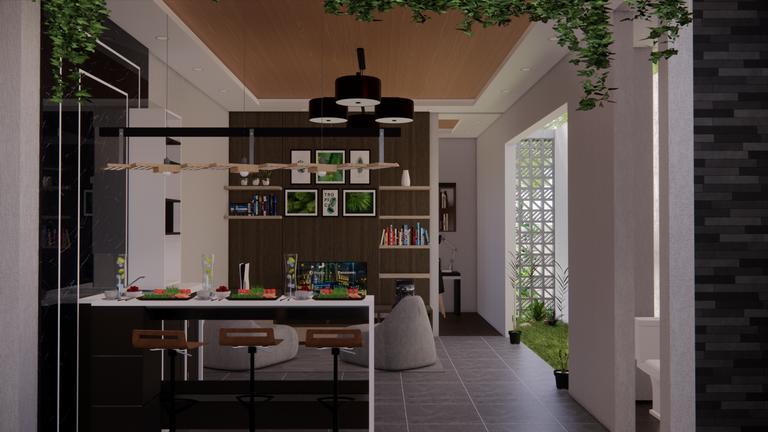 Berikut merupakan konsep modern tropis pada bagian Interior yang di terapkan pada rumah tinggal tersebut :