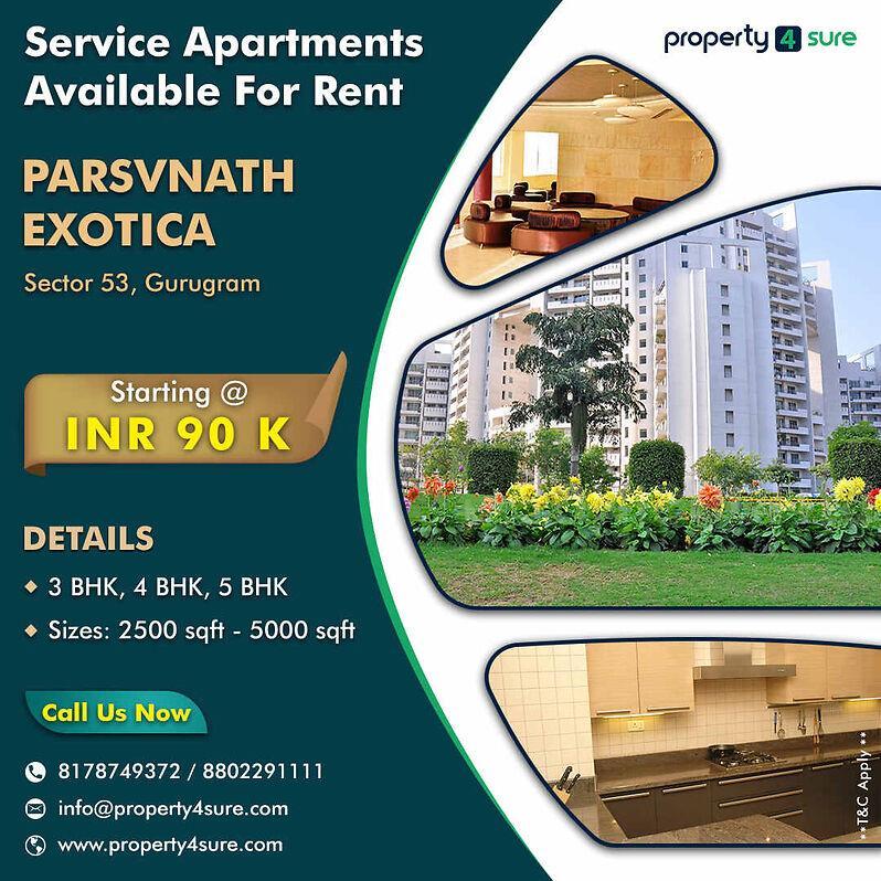• Find 5 BHK Service Apartment for Rent. • Parsvnath Exotica is the rising Residential Project in Gurgaon that takes pride in providing the best 5 BHK Apartments on Rent for all the home seekers. • Parsvnath Exotica, located in Sector 42, Gurgaon, offers apartments with the price being on request. About Parsvnath Exotica 5 BHK Service Apartment for Rent | Parsvnath Exotica for Rent