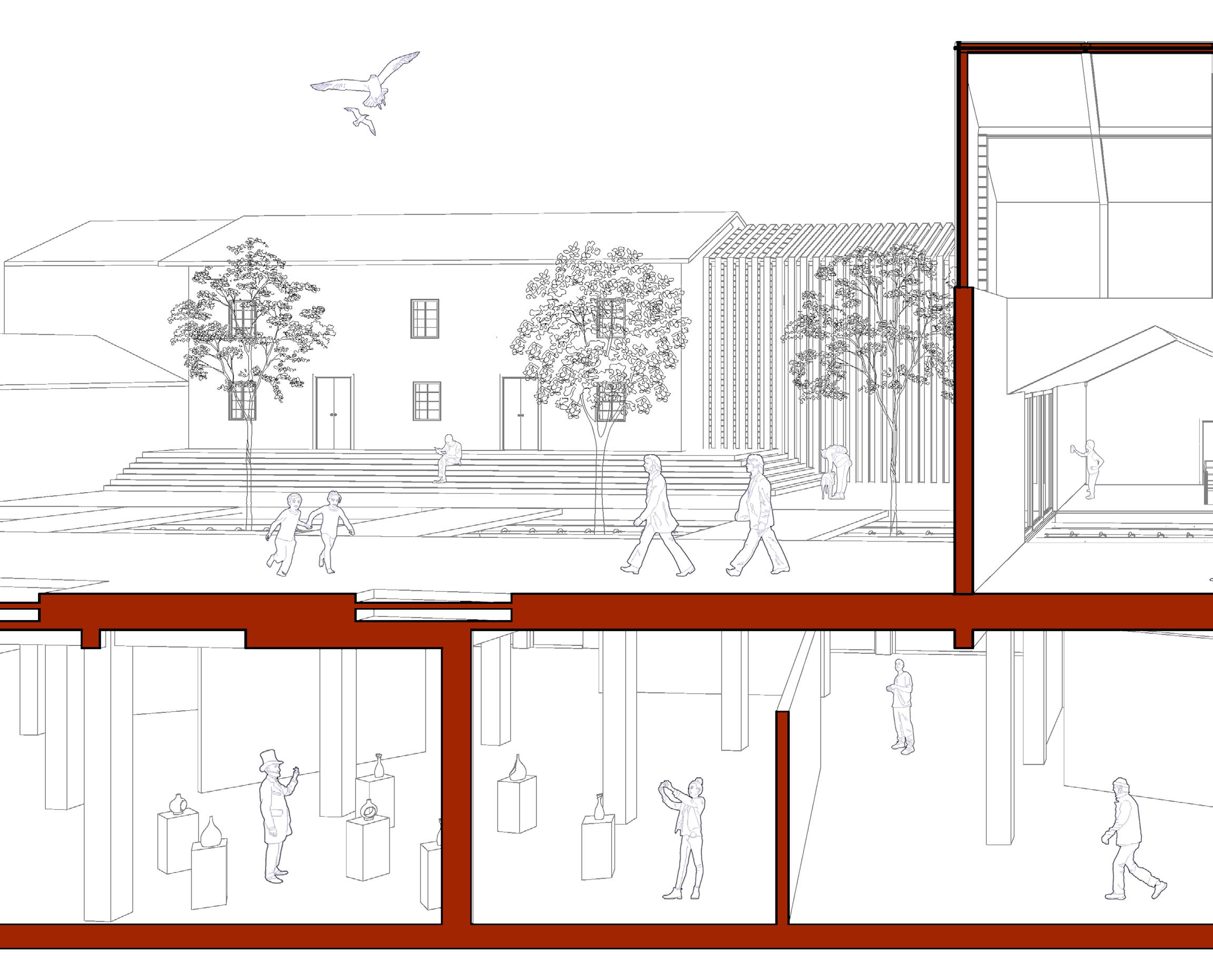 Eine Person, die diese ganze Kette durchquert, kann die Geschichte dieses Ortes und dieser Stadt kennenlernen. Zudem wurde durch die Verbindung der Gebäude ein Innenhof geschaffen, der eine Zone von der anderen trennt.