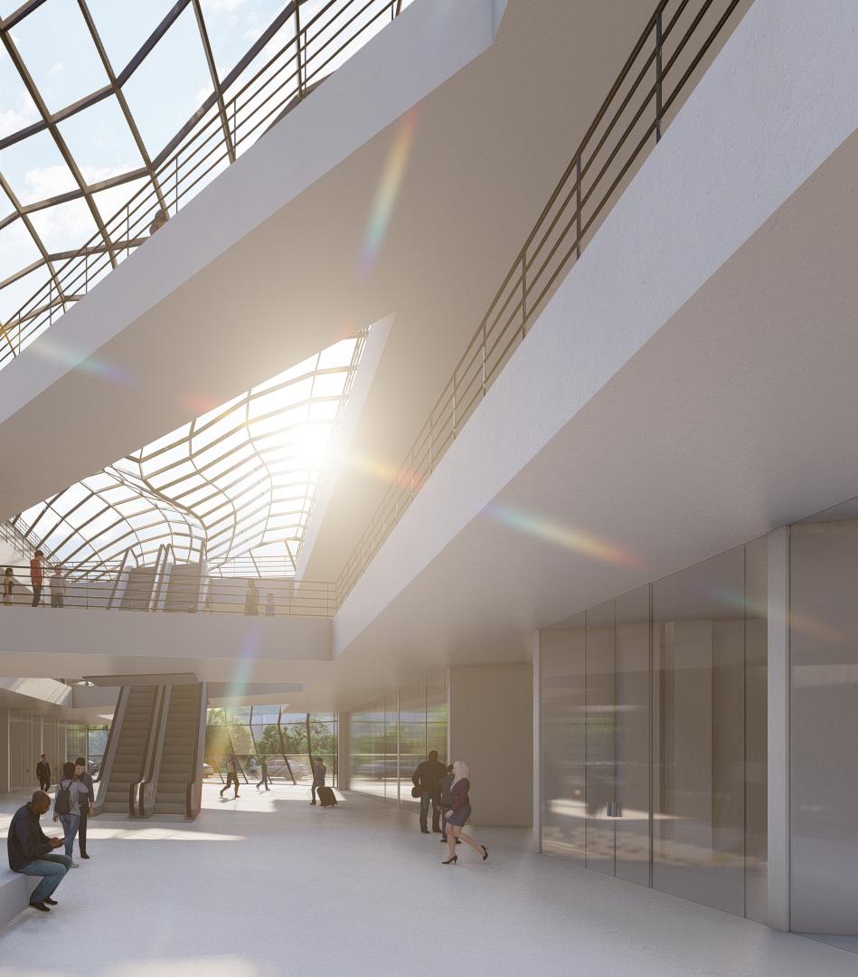 Die Idee hinter dem Projekt besteht darin, die alte Architektur mit der neuen in Einklang zu bringen. Durch die Schaffung verbundener Korridore entstand eine durchgehende Linie zwischen den drei historischen Gebäuden des Bahnhofs.