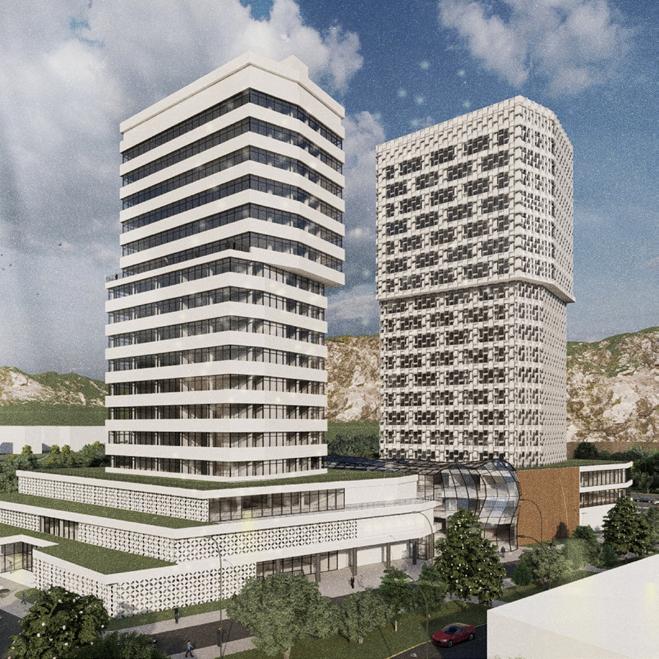 Das architektonische Erscheinungsbild des geplanten Verwaltungs- und Geschäftszentrums repräsentiert die Idee der Verbindung zwischen der Architektur der Vergangenheit und der Architektur der Gegenwart und zeigt, wie Almaty sich derzeit an der Kreuzung zweier Epochen befindet.
