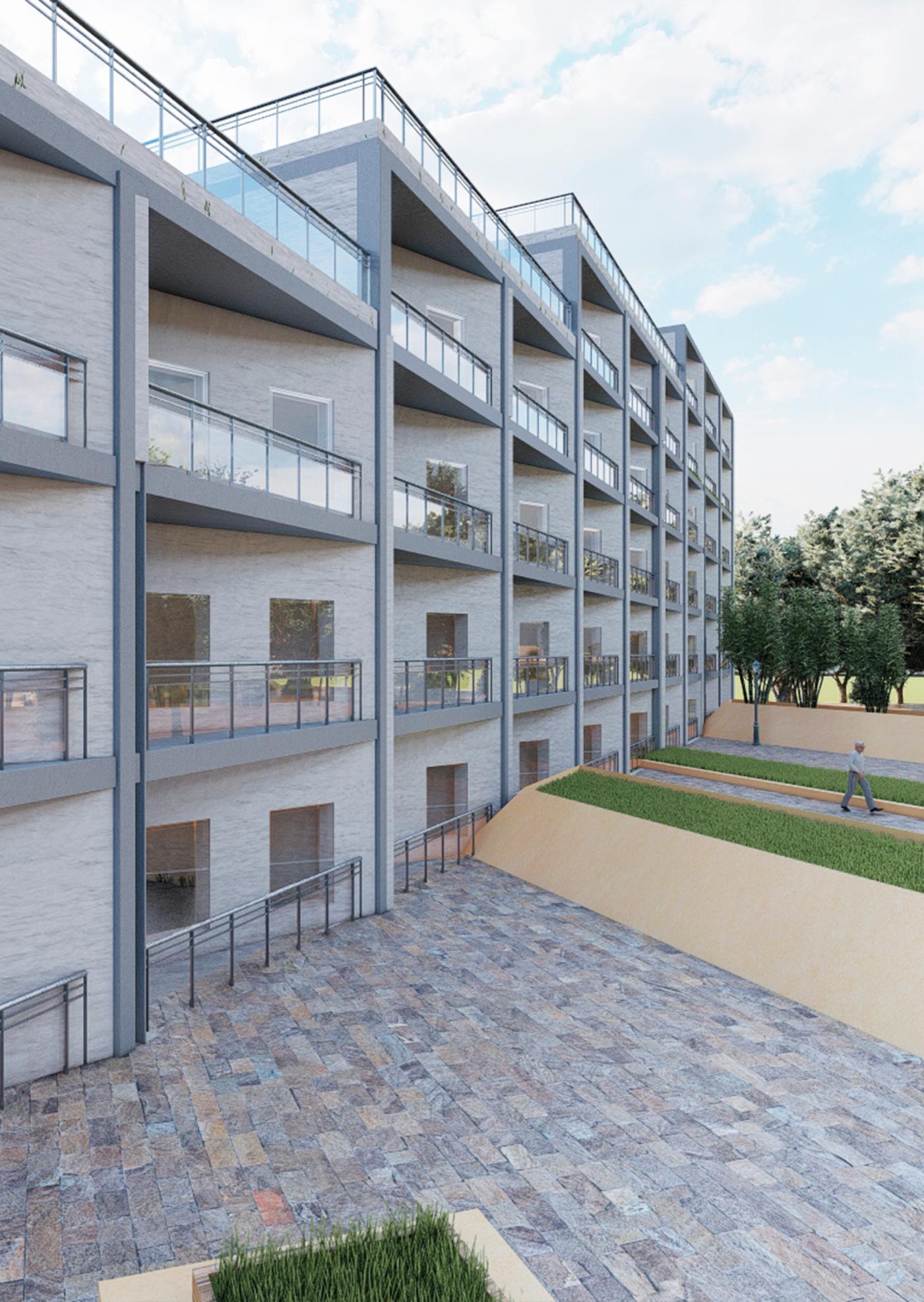 Der geschaffene Grünraum soll zu einem der lokalen Anziehungspunkte werden und die Bewohner und Besucher anziehen, um in diesem Park zu entspannen. Meine Aufgabe bestand darin, im Park eine komfortable Wohnanlage zu schaffen, die alle notwendigen Technologien für ein komfortables Wohnen beinhaltet.