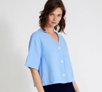 MALENA CROPPED SHIRT S42301 Col. Off White, Light Blue. 100% Cotton. Size XS-XL