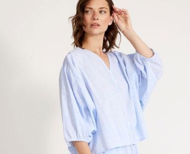 EMILY BLOUSE S42304 Col. White, Light Blue/White, Navy, Light Pink/White. 55% Linen, 45% Cotton. Size XS-XL