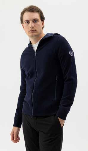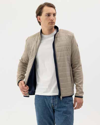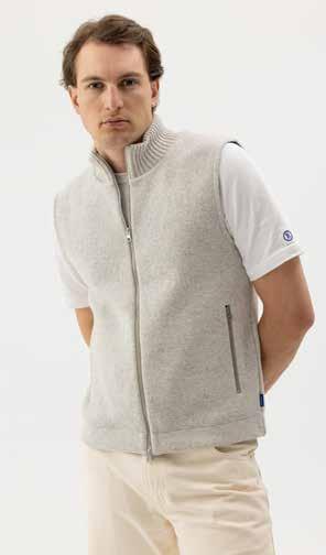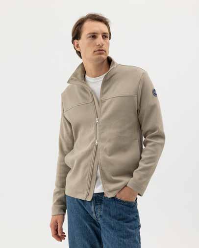 Designed for light outdoor activities, our windproof sweaters and jackets feature water-repellent quilted details on the most exposed areas. The fabric is called Piumi and has a water repellent treatment. The treatment is organic and free of fluorocarbon, a common chemical used to produce waterproof fabrics. The fabric has been certified with the Oeko-Tex® Standard 100, which guarantees that the fabric is free of harmful substances. Piumi is also a breathable fabric. This maintains the benefits and properties of the knitted fabric, such as transport away moisture and retaining heat.