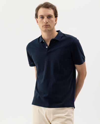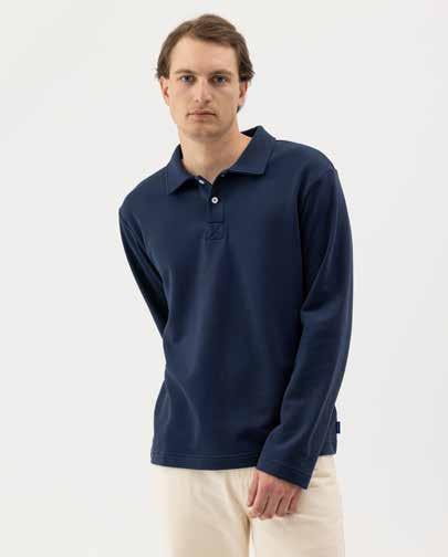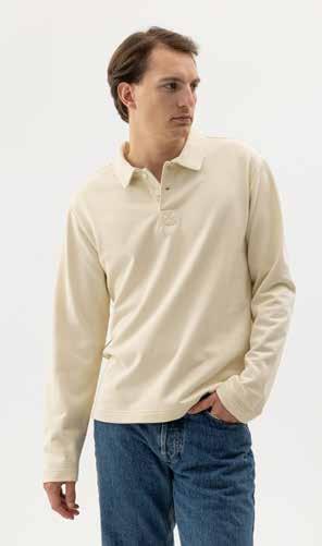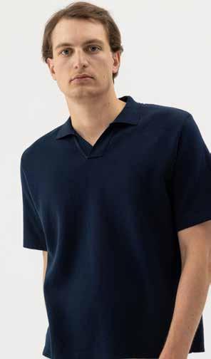 Milano knitted polo in organic cotton. 12 gauge. Relaxed popover shirt with short sleeves, V-making and polo collar. Raw endings. Relaxed fit.