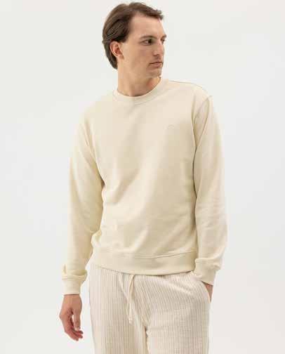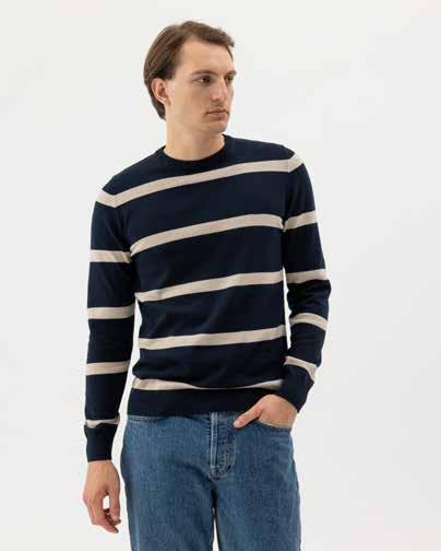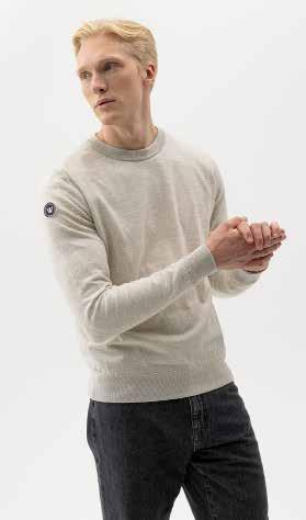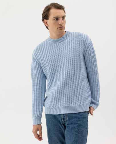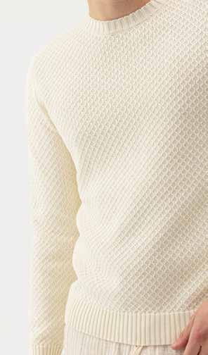 Structure knitted crew neck in organic cotton. 7 gauge. A light sweater with knitted trims. Regular fit.