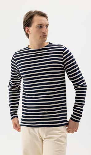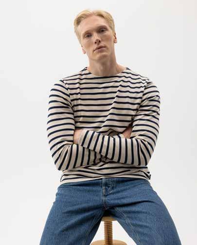 Boatneck in organic cotton. Soft heavy single jersey, traditional stripes and small slit in sides. Regular fit.