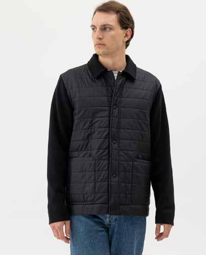 Jacket in knitted organic cotton combined with woven quilt. 12 gauge. Knitted sleeves, collar and back part. Woven quilt at front and yoke at back. Colour matching press buttons. Woven windproof lining. Regular fit.