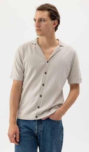 Thin knitted shirt in certified cotton. 12 gauge. Bowling shirt knitted in high twisted crépe quality that offers a dry and cool handfeel. Buttons at front. Tubular hem. Regular fit.